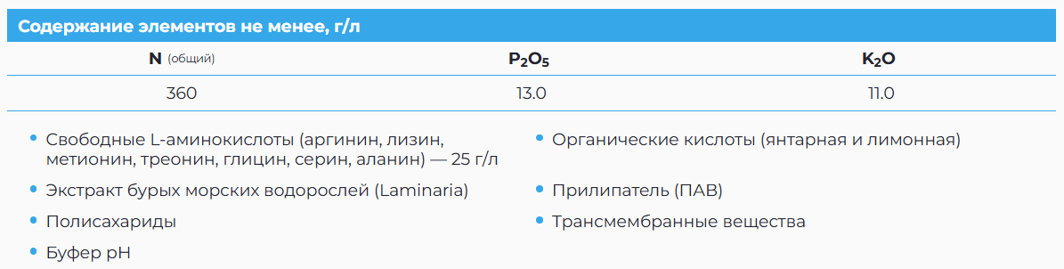 • Дополнительный комплекс аминокислот для стимуляции роста и защиты от стрессовых факторов